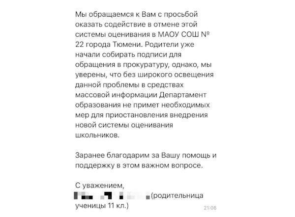 По ее информации, родители школьников собирают подписи за отмену новой системы оценивания. Кроме того, тюменцы планируют обращаться с жалобами в прокуратуру, Рособрнадзор и Министерство просвещения.