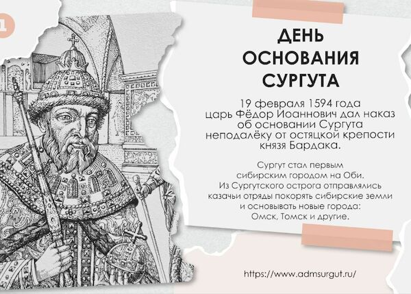 Мэр Сургута Андрей Филатов привел в своем telegram-канале факты о городе в честь его 430-летия. Несмотря на то, что день рождения муниципалитета отмечается 12 июня, фактически история Сургута началась 19 февраля. Именно этот день упоминается в наказе Великого князя и царя Всея Руси Федора Иоанновича, как день основания города.
