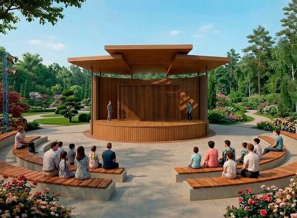 Название «Театральный сквер сказочных поколений» говорит само за себя: пространство объединит театральную и сказочную тематики. На входе гостей будет встречать арт-объект «Театральные маски». Также в сквере расположится сцена «Лукоморье» и беседка «Аленький цветочек». Для маленьких горожан обустроят три тематические площадки по мотивам известных произведений — «Колобок», «Финист – Ясный Сокол» и «Незнайка на Луне».